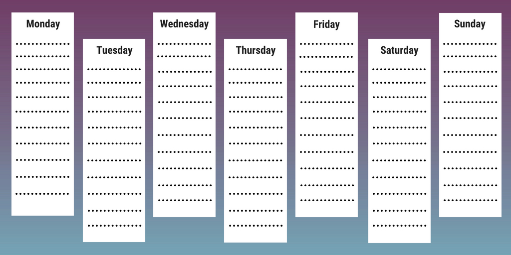 If you plan weekly you’ll be able to fit your training sessions and your meals around what else you are doing. That way you’ll be able to make sure you don’t have any conflicting appointments and you’ll be more likely to stick to your overall plan.